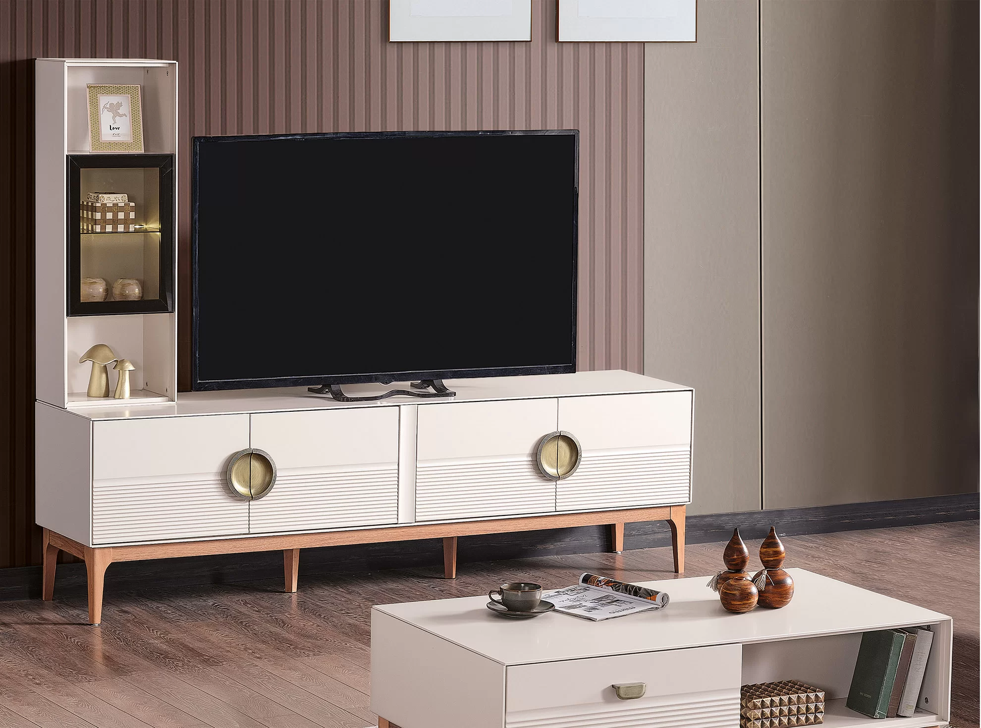 Pera TV ünitesi, modern ve sade tasarımıyla yaşam alanlarında ferah bir görünüm oluşturur. Kullanışlı depolama alanları sayesinde şıklık ve fonksiyonelliği bir arada sunar.