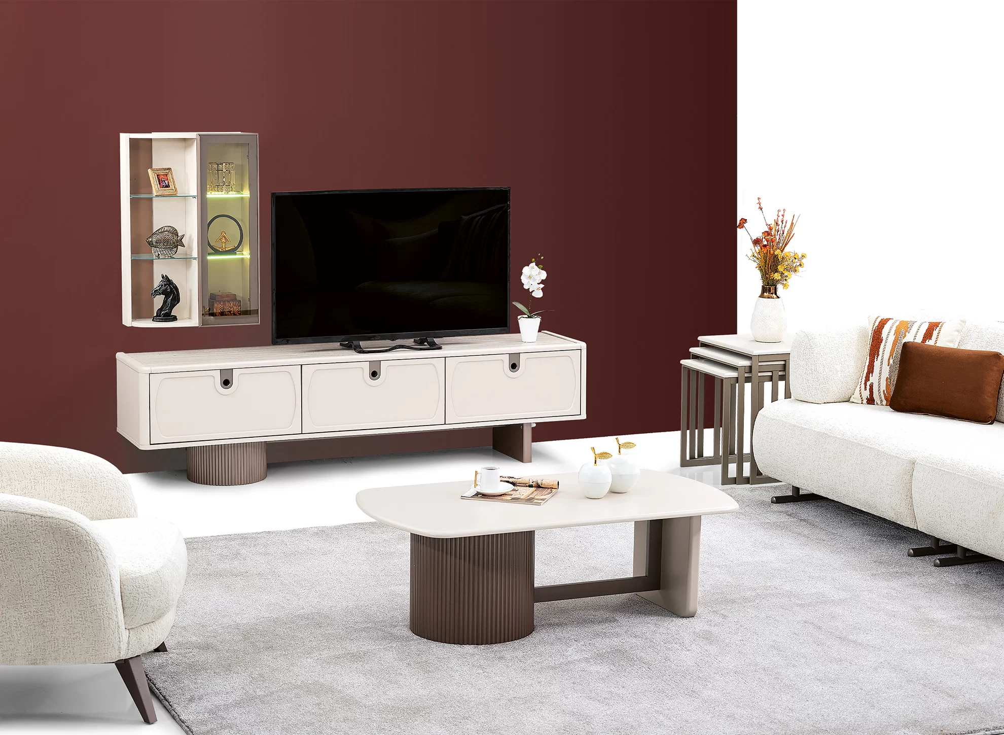 Rio TV ünitesi, sade çizgileri ve zamansız tasarımıyla her dekorasyona uyum sağlar. Kullanışlı depolama alanlarıyla hem şık bir görünüm hem de pratik bir kullanım sunar.