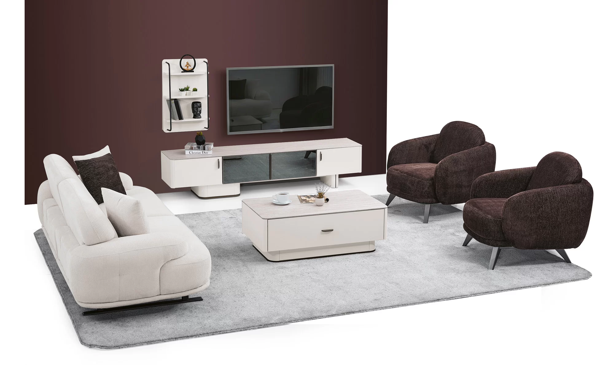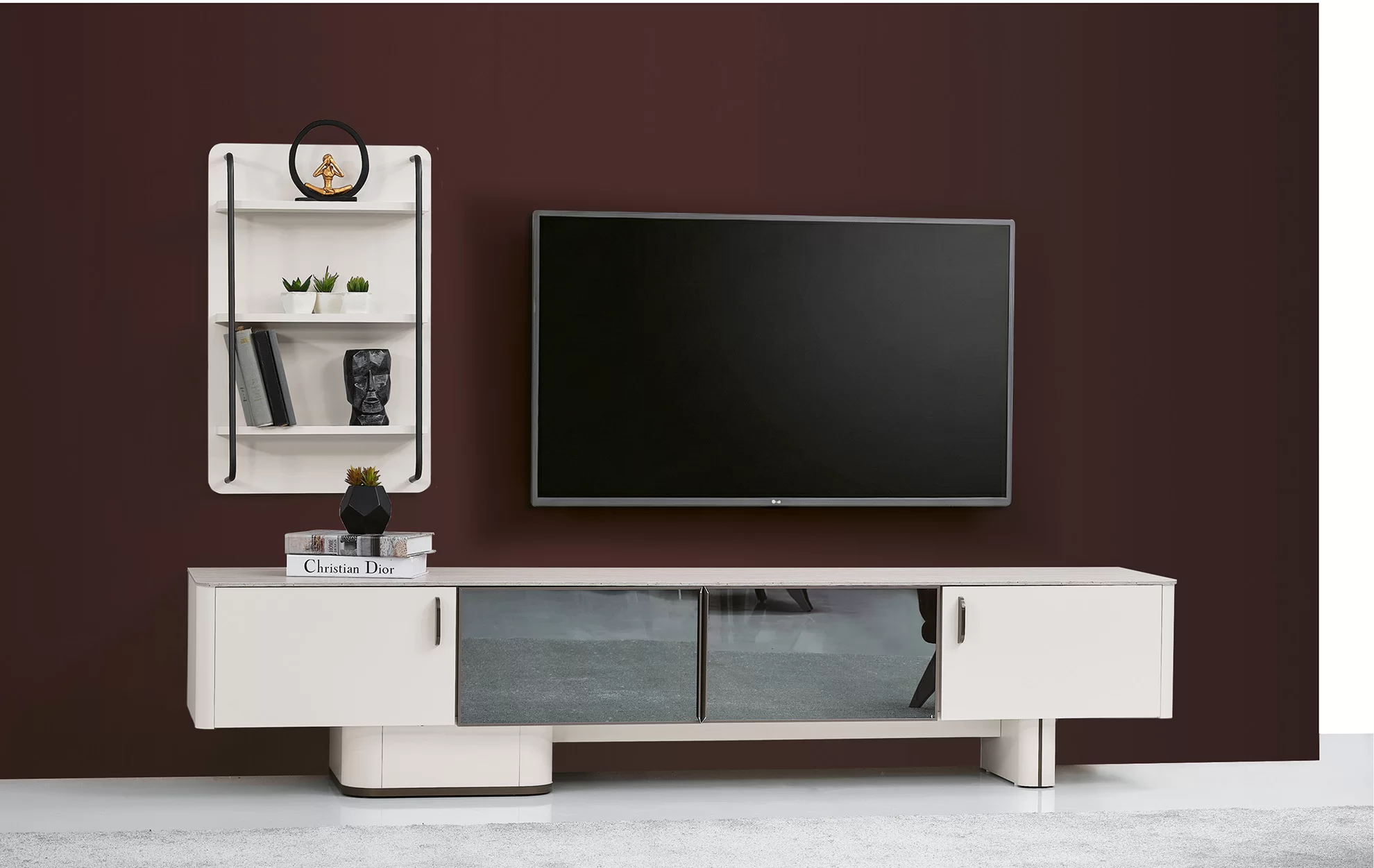 Space TV ünitesi, modern ve minimal tasarımıyla yaşam alanlarına şıklık katar. Fonksiyonel raf ve depolama alanları sayesinde hem estetik hem de düzenli bir kullanım sunar.