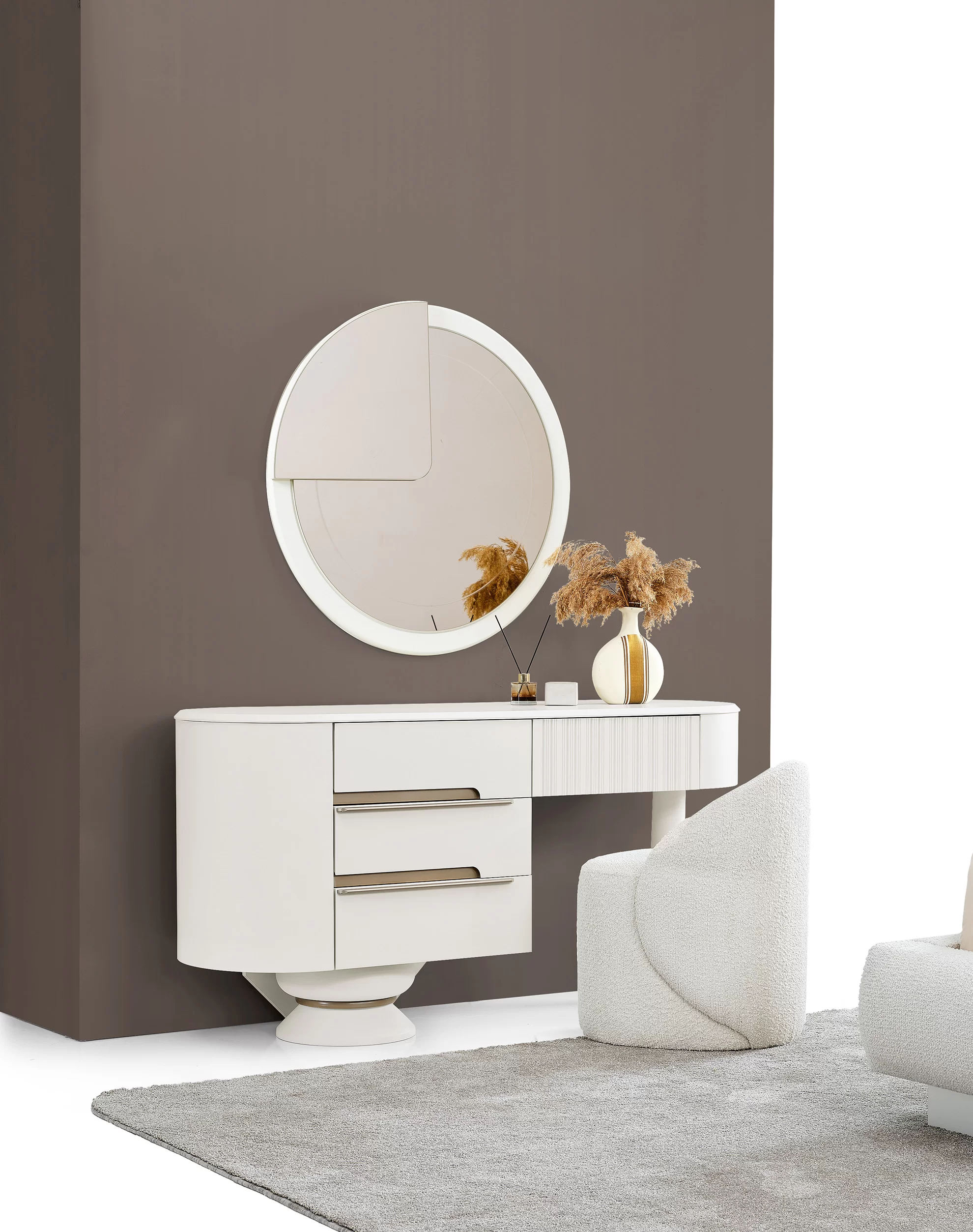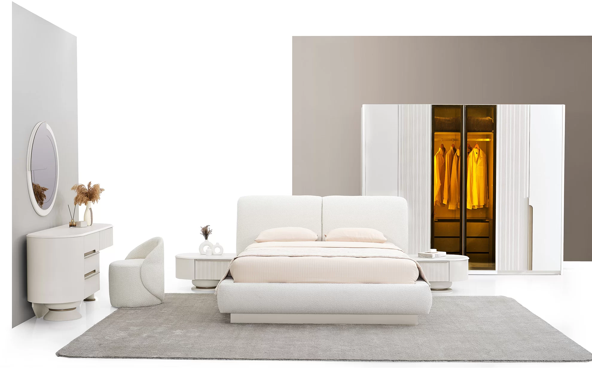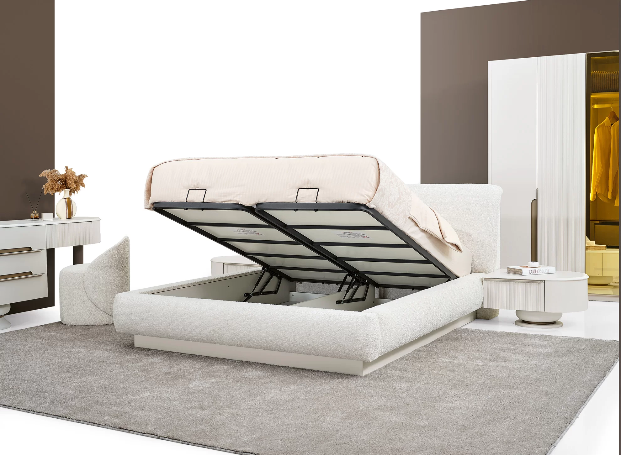 Bu yatak odası takımı, sadece bir mobilya seti değil, kişisel sığınağınızın mimari ifadesidir. Tasarım, her detayda organik formları ve yumuşak geçişleri ön plana çıkarır.
