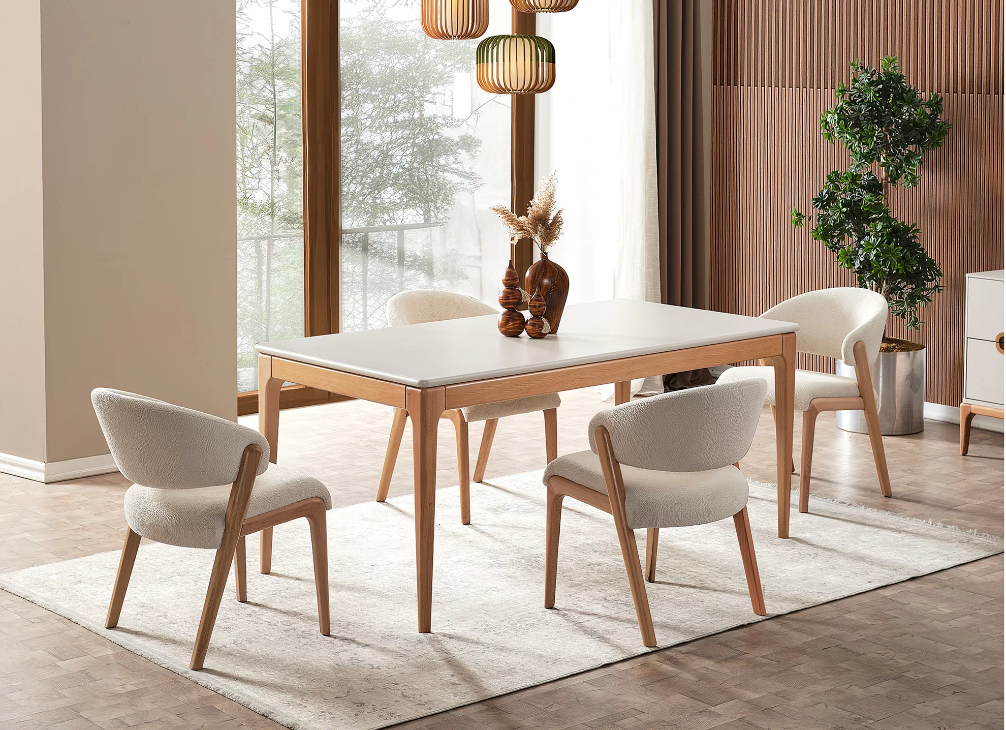 Mercure yemek odası takımı, sadece bir yemek masası ve sandalyelerden çok daha fazlasını sunuyor. Bu takım, evinize sıcaklık, samimiyet ve stil katacak özel bir tasarım anlayışını temsil ediyor.